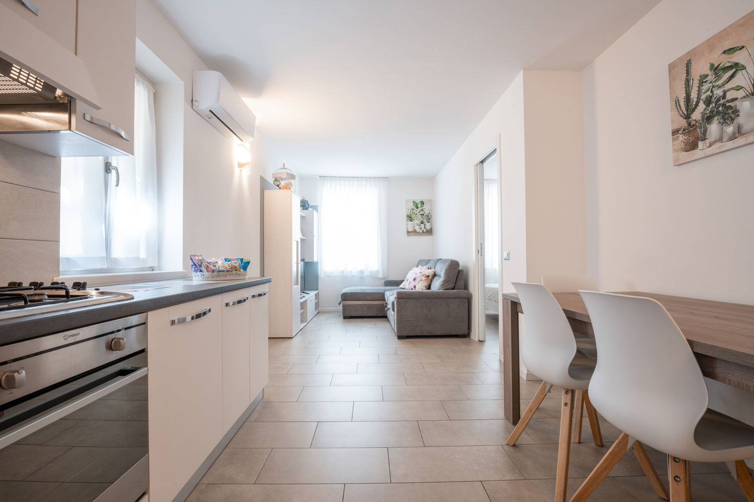 Appartamento sito al primo piano composto cucina, dotata di tutto il necessario, forno, frigo con congelatore, microonde, tostapane. Nel soggiorno è presente una parete attrezzata con smart Tv 32″ un divano con scesiong che può diventare un comodissimo letto con topper in memory, da una porta scorrevole si accede alla camera con letto matrimoniale 160×190 compresa di biancheria, un capiente armadio con cassaforte, nella stanza si ha a disposizione una smart Tv. Il bagno è fornito di ogni sanitario, una comoda doccia e una lavatrice, kit cortesia e biancheria da bagno.